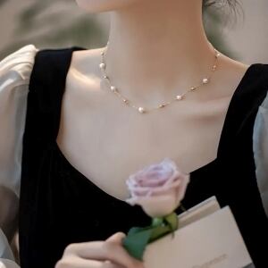 シンプルなデザインですが、パールが首元に華やかさを出してくれます。